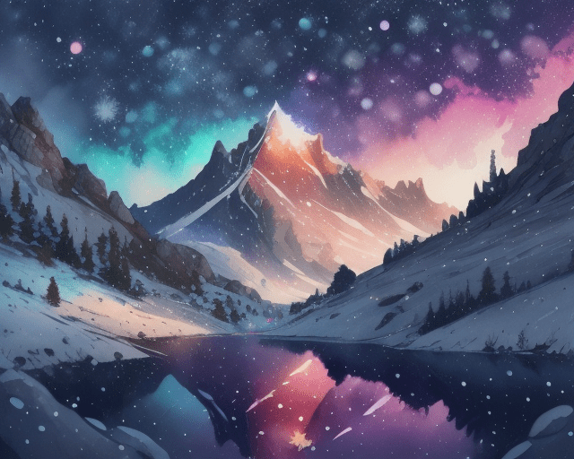 snow falls on the mountainside among stones